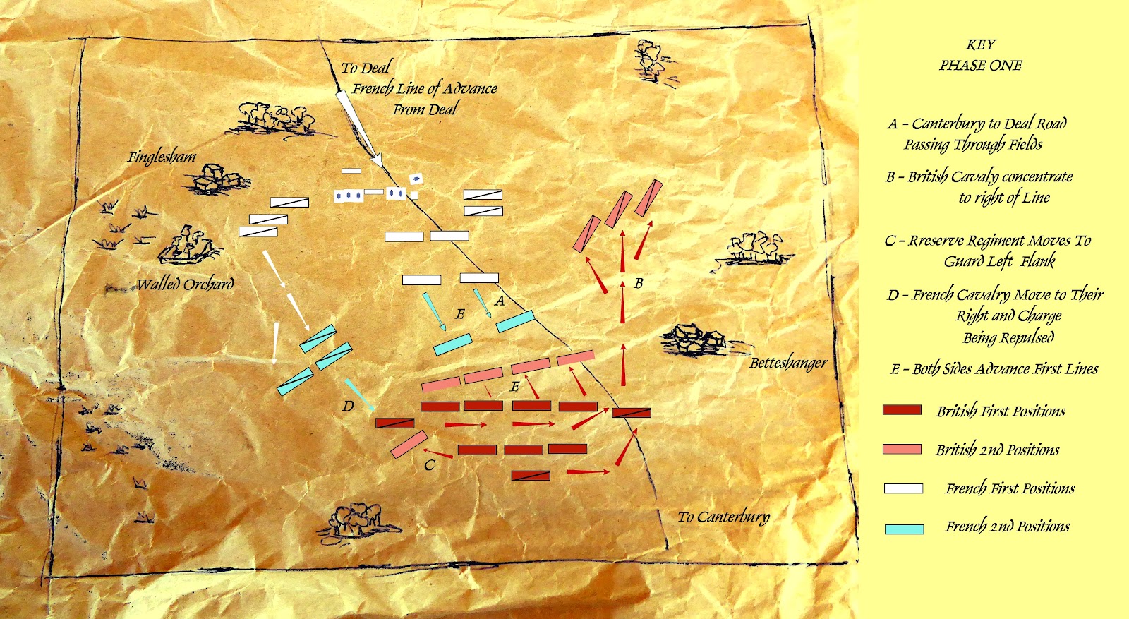 Overnight the two armies sleep on their arms on the field, while the senior officers repair to the inns at Finglesham, Eastry and Ham.